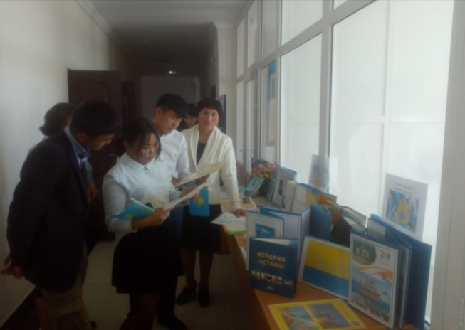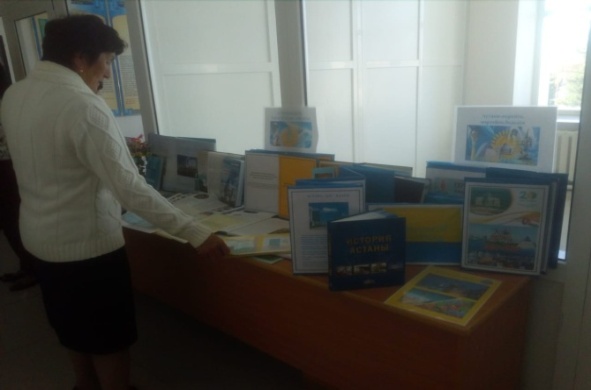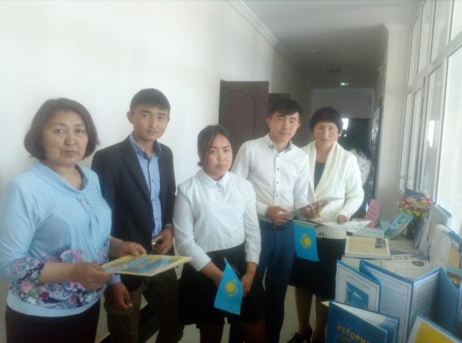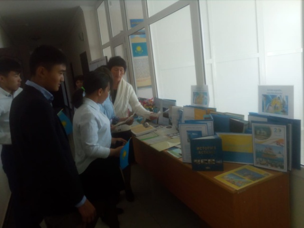 “ЕЛ РӘМІЗДЕРІ-ТӘУЕЛСІЗДІК АЙҒАҒЫ” атты кітап көрмесін ұйымдастырып, оқырмандарды қойылған кітаптар мен бүктемелермен таныстырдым.