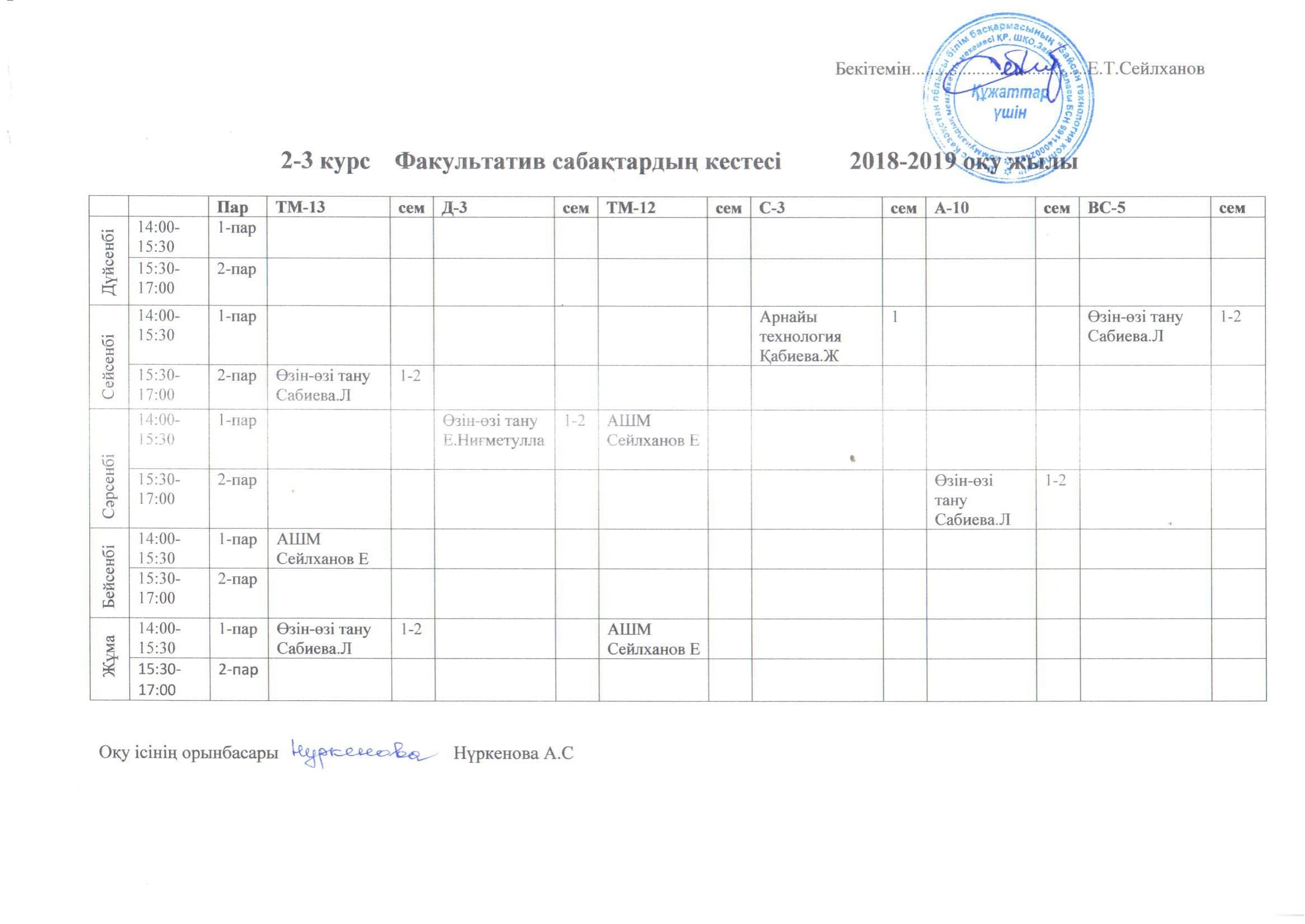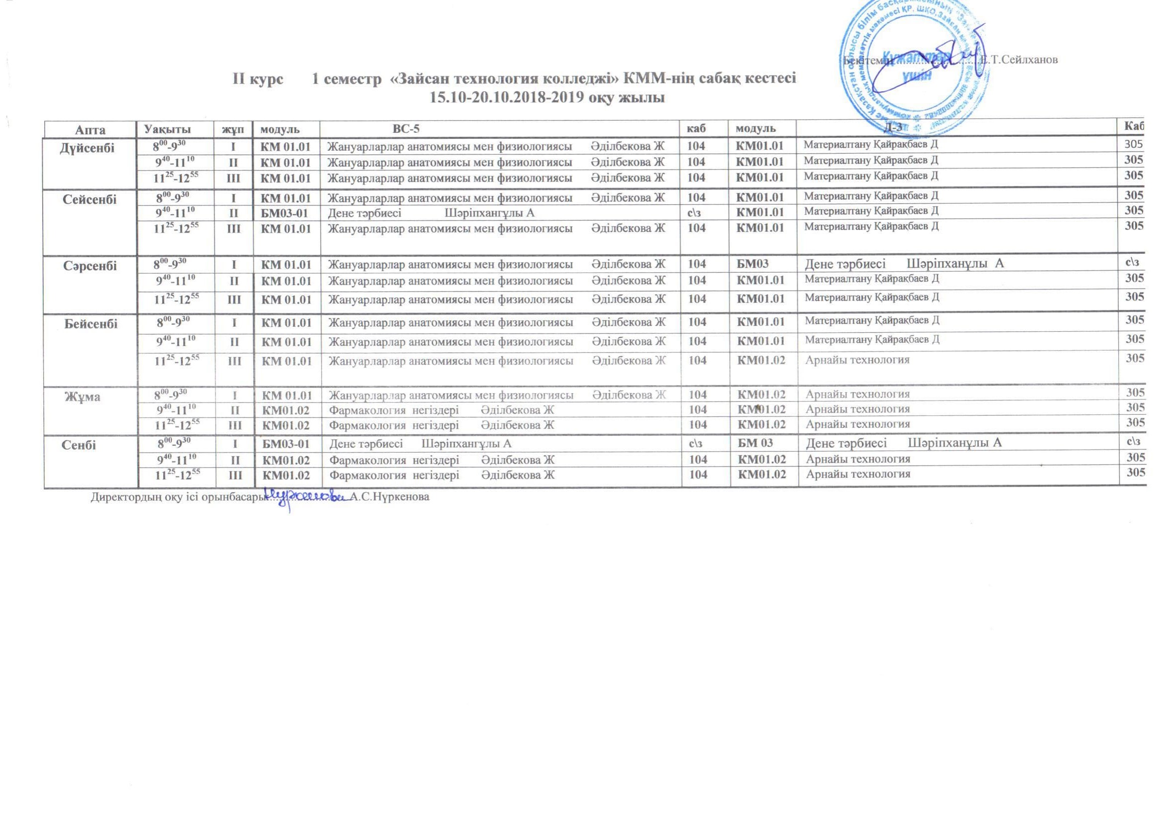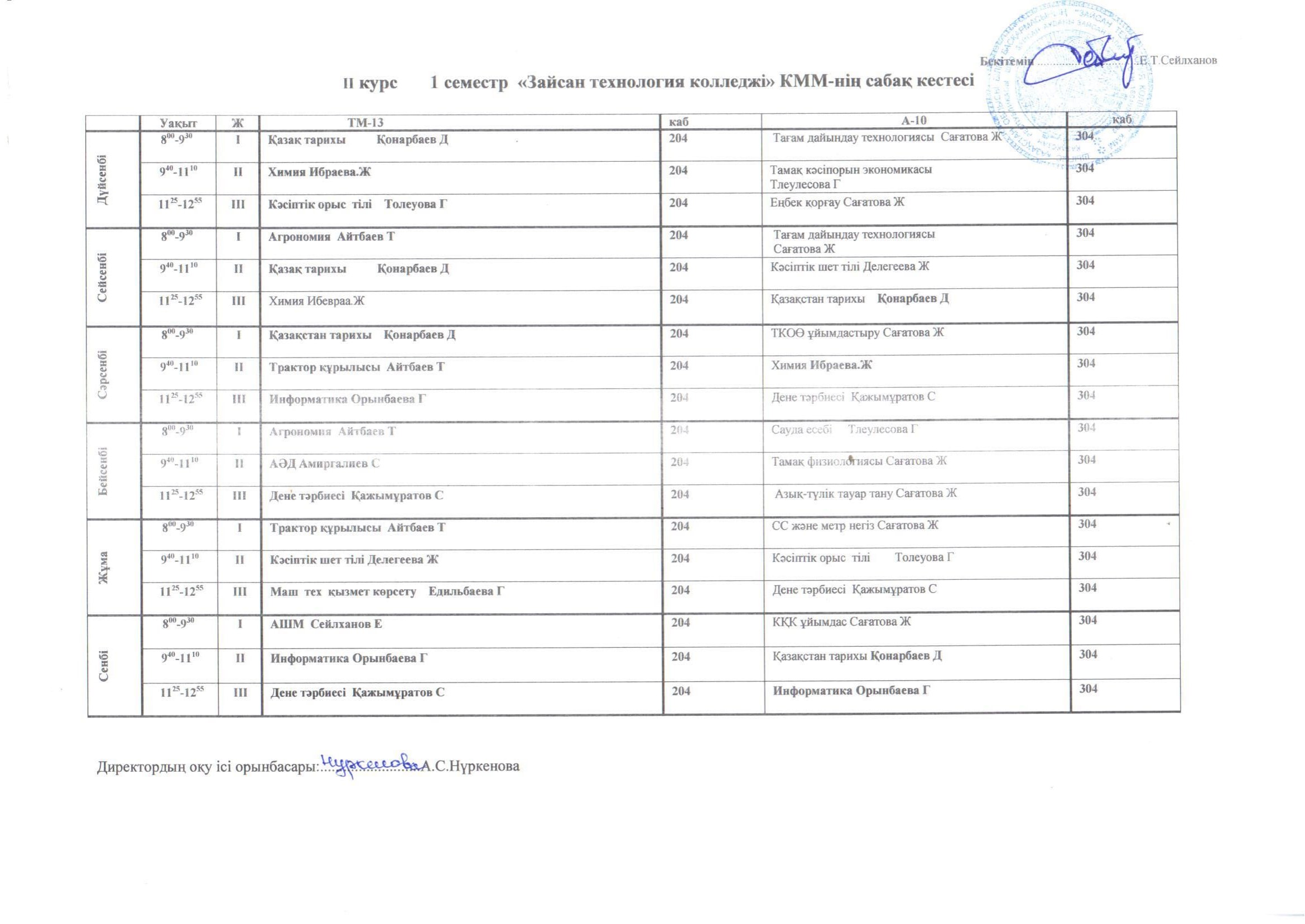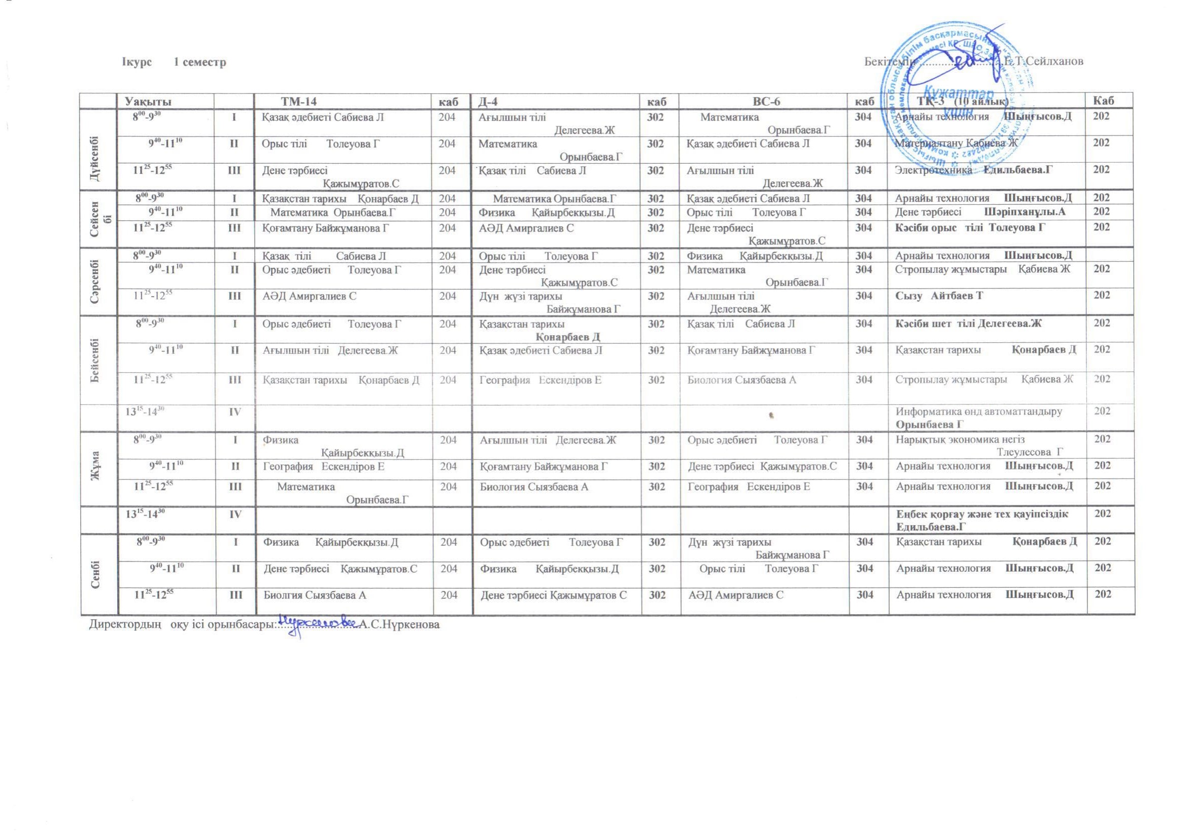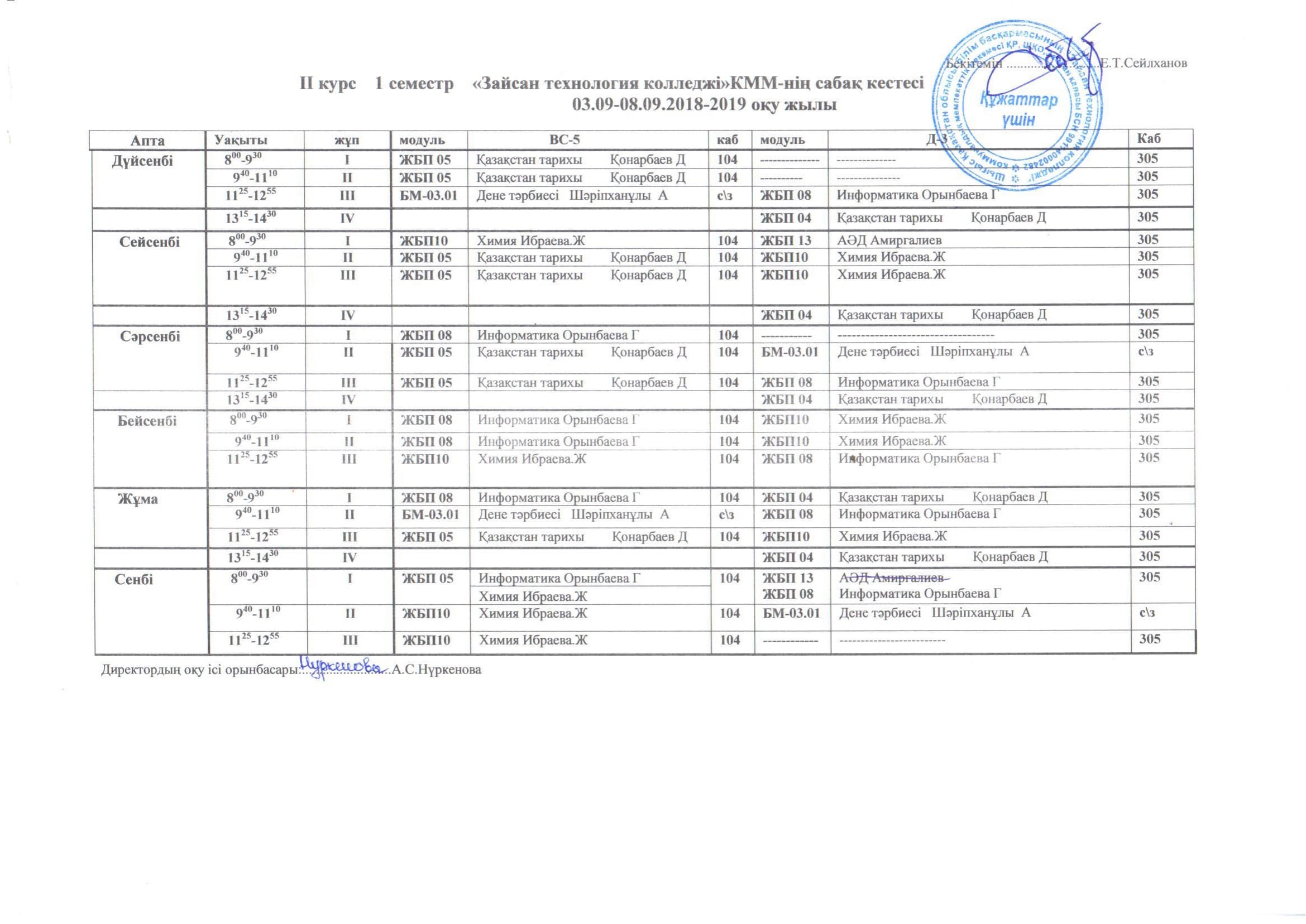 Сабақ кестесі