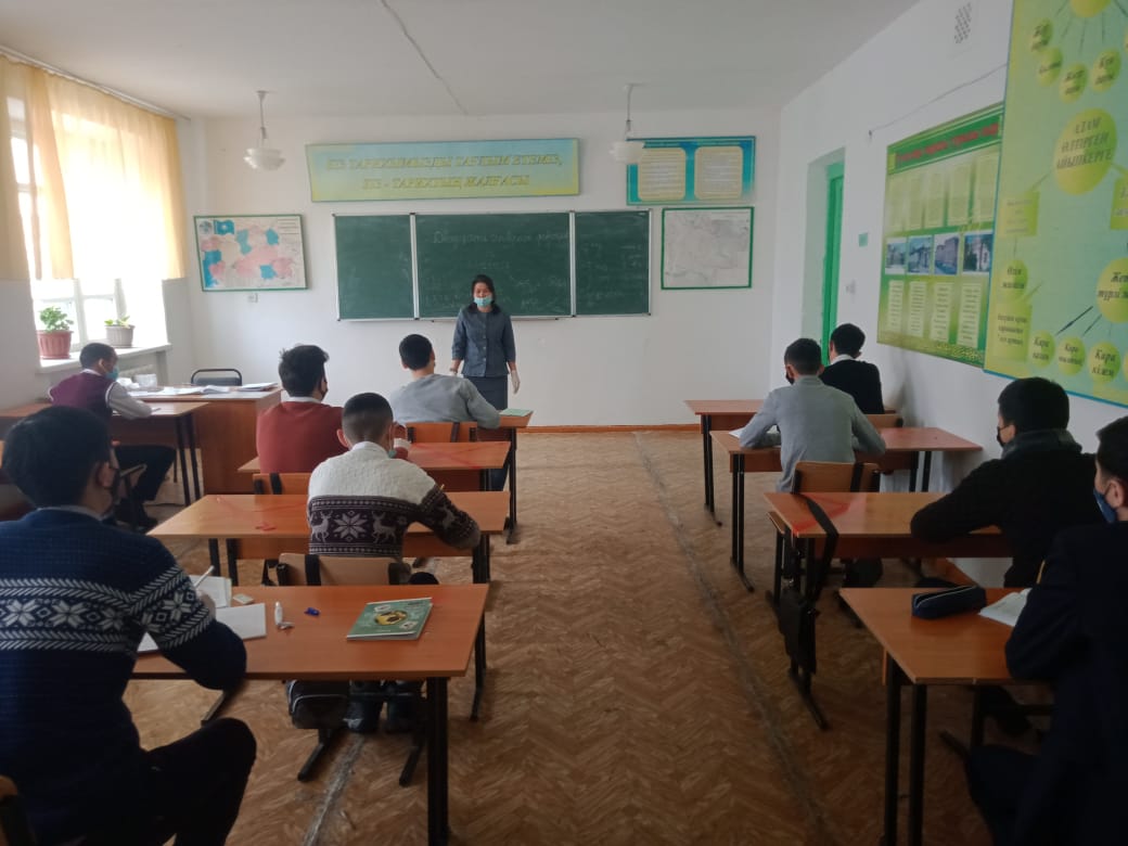 Орыс тілі,әдебиет пәнінің оқытушысы Г.Толеуова 1курс ТМ-16 тобында сабақ үстінде