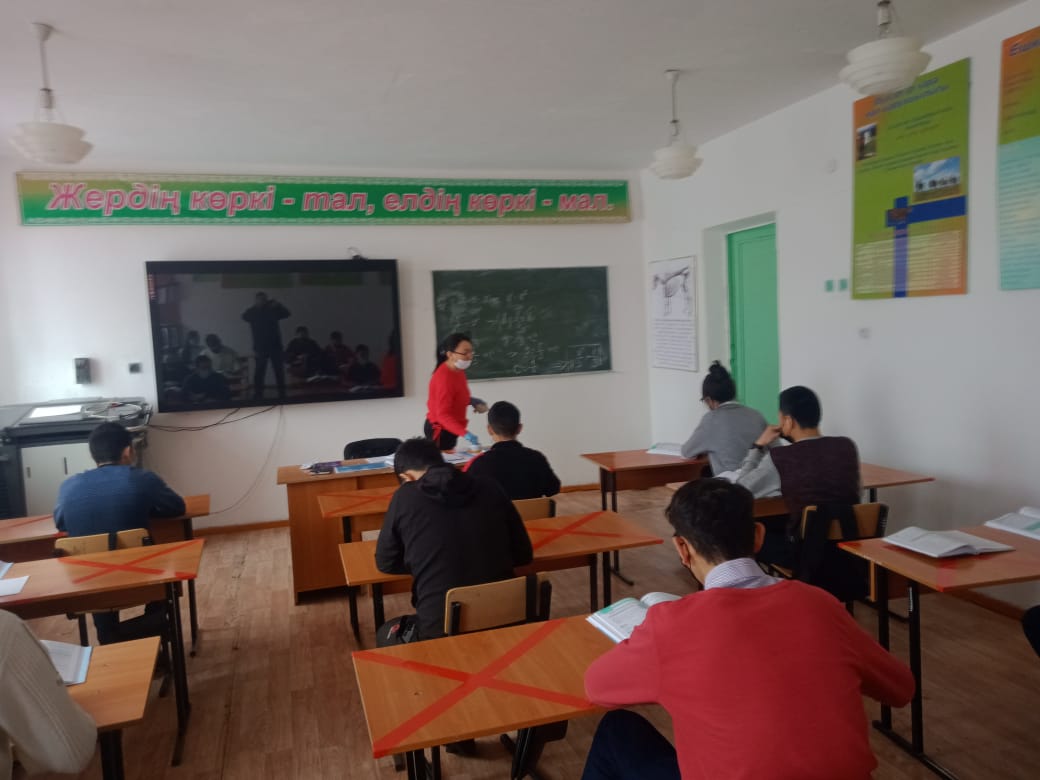 Химия пәнінің оқытушысы Ж Ибраева 1 курс ТМ-16 тобында сабақ үстінде