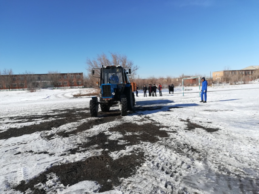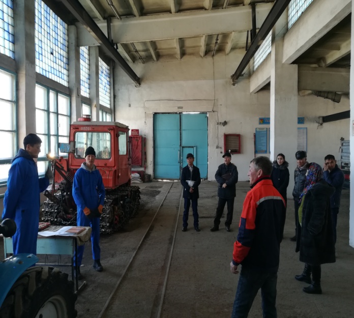 Өндірістік оқыту шебері А.Боранбаев 3 курс тракторист-машинист тобымен «МТЗ-82 тракторына ПТ-4 тіркемесін тіркеп арнайы жүргізу» тақырыбында ашық сабақ өткізді. Сабақ барысында студенттер сабақ барысында өздерін кәсіби маман ретінде сезіну үшін, тракторист-машинист мамандығын сомдау арқылы ой қабілеттерінің артуымен бірге, таңдаған мамандығына белсенділігі мен қызығушылығы оянып, ізденімпаздық, шығармашылық қабілеттерімен ерекшеленді. Тәжірибелік іс-әрекеттің орындалуына қарай ортақ қателіктерін түзей білді.
