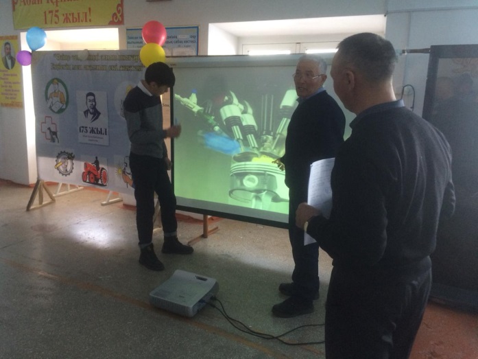 Өндірістік оқыту шеберлері Қ.Наурызбаевпен Е.Ниязханов «Ойлан тап, тапқырлар!» тақырыбында топтар арасында сайыс ұйымдастырып өткізді. Сайыста Абай атамыздың өміріннен және мамандыққа қатысты сұрақтар жасырылды. Студенттер мамандықты жақсы меңгергенмен қоса, Абай Құнанбайұлының шығармашылығын да өте жақсы білетіндерін көрсете білді.