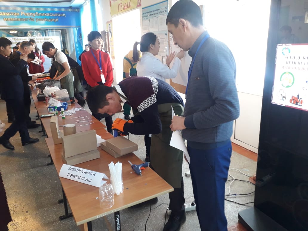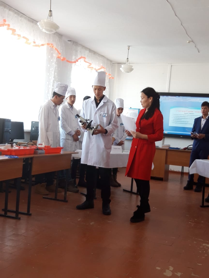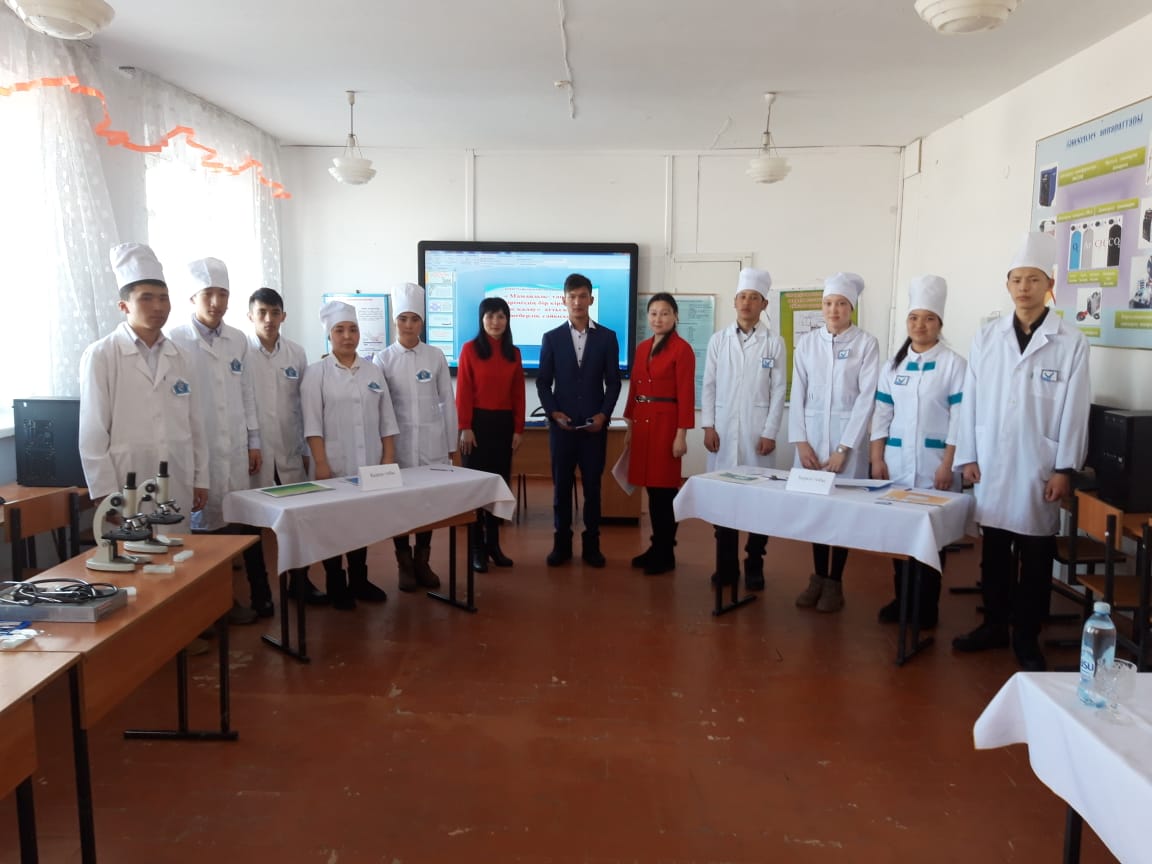Арнаулы пән оқытушысы А.Жайлаубаева мен өндірістік оқыту шебері Г.Еңсебаева ветеринар-санитар тобымен «Мамандық таңдау -өміріңіздің бір кірпішін дұрыс қалау» тақырыбында кәсіби шеберлік сайыстар өткізді. Студенттер тәжірибелік жұмыстарын бейнеге түсіріп экран арқылы көрсете отырып, кабинетте теориядағы білімдерін бір-бірімен жарыса сұрақтарға жауап бере отырып көрсетті.