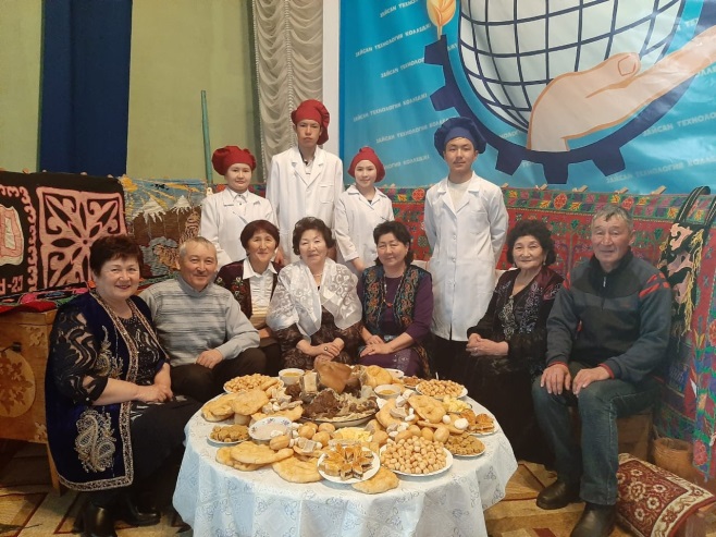 Он күндік барысында аспаз мамандығының өндірістік оқыту шебері Н.Ғ. Айгозина 1 курс аспаз тобымен «Қазақы дастарханым – өзіңсің бақ-берекем» тақырыбында шеберлік сынып және Абай Құнанбайұлының 175 жылдығына орай ардагер ұстаздармен «Ата-бабаны, ұлттық дәстүрді құрметтеу – тәрбие негізі» тақырыбында кездесу кешін ұйымдастырып, студенттердің өндірістік оқу барысында өз қолдарынан дайындалған әр түрлі тағамдарын келген ардагер ұстаздарымызға ұсынып, дастархан жайды. Шеберлік сыныпқа өте жақсы деген баға берілді.