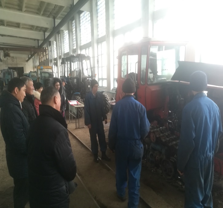 Өндірістік оқыту шебері А.Оңғарбаев 1 курс тракторист-машинист тобымен «ДТ-75 тракторын төменгі берілістен жоғарғы беріліске ауыстырып бұрылыстан жүргізіп үйрену» тақырыбында ашық сабақ өткізді. Сабақ барысында студенттер сабақ барысында өздерін кәсіби маман ретінде сезіну үшін, тракторист-машинист мамандығын сомдау арқылы ой қабілеттерінің артуымен бірге, таңдаған мамандығына белсенділігі мен қызығушылығы оянып, ізденімпаздық, шығармашылық қабілеттерімен ерекшеленді. Тәжірибелік іс-әрекеттің орындалуына қарай ортақ қателіктерін түзей білді.