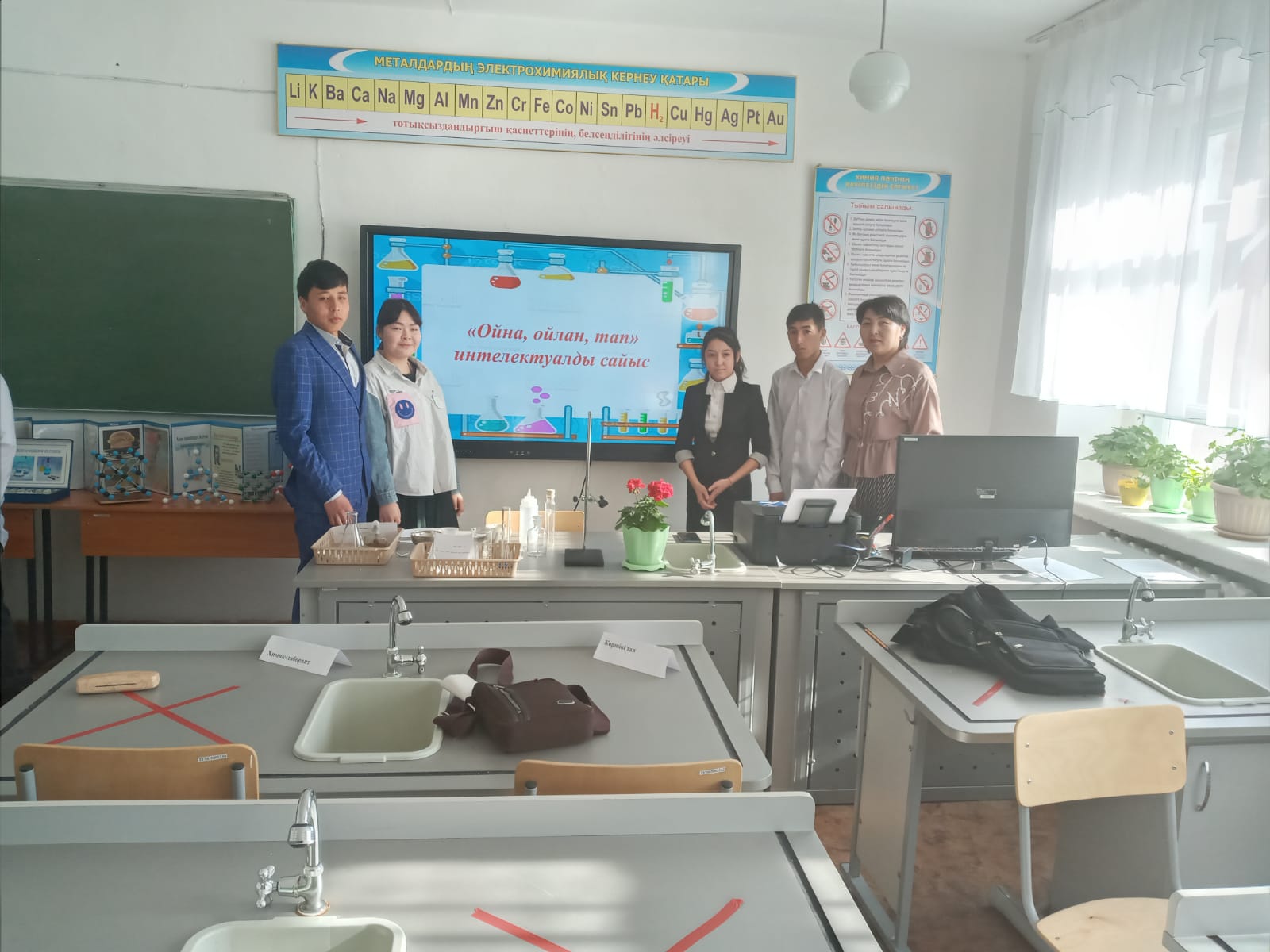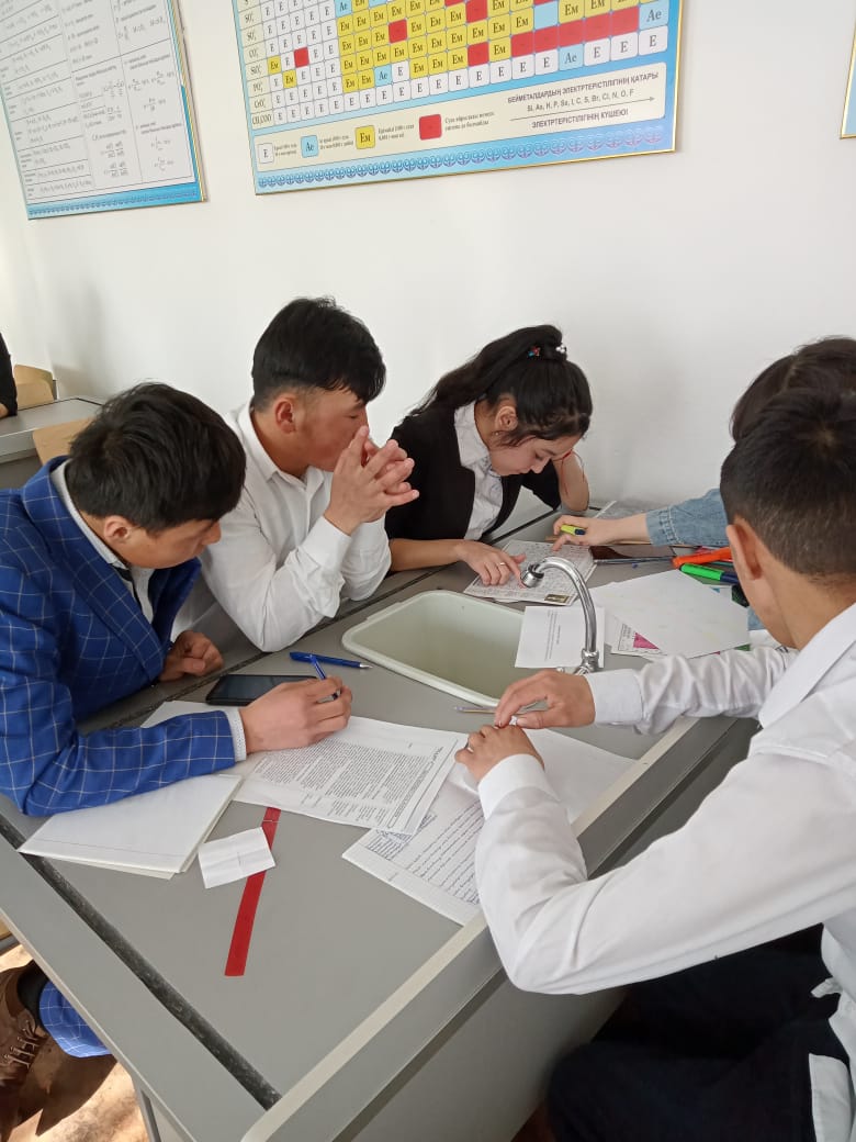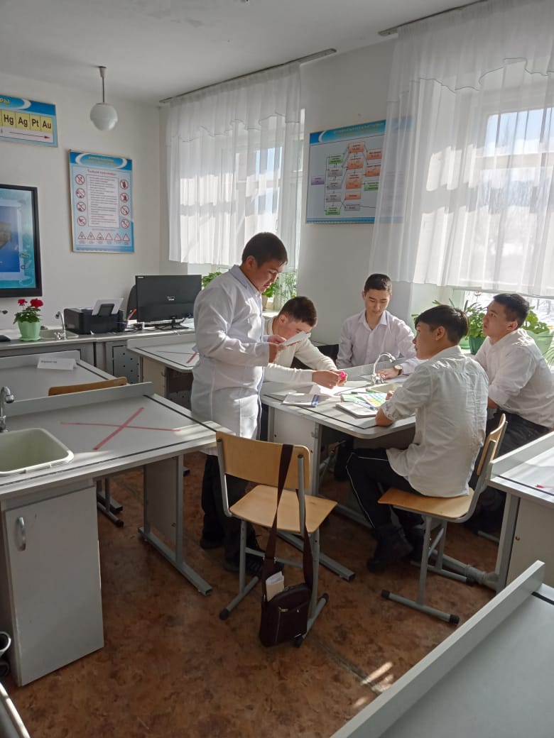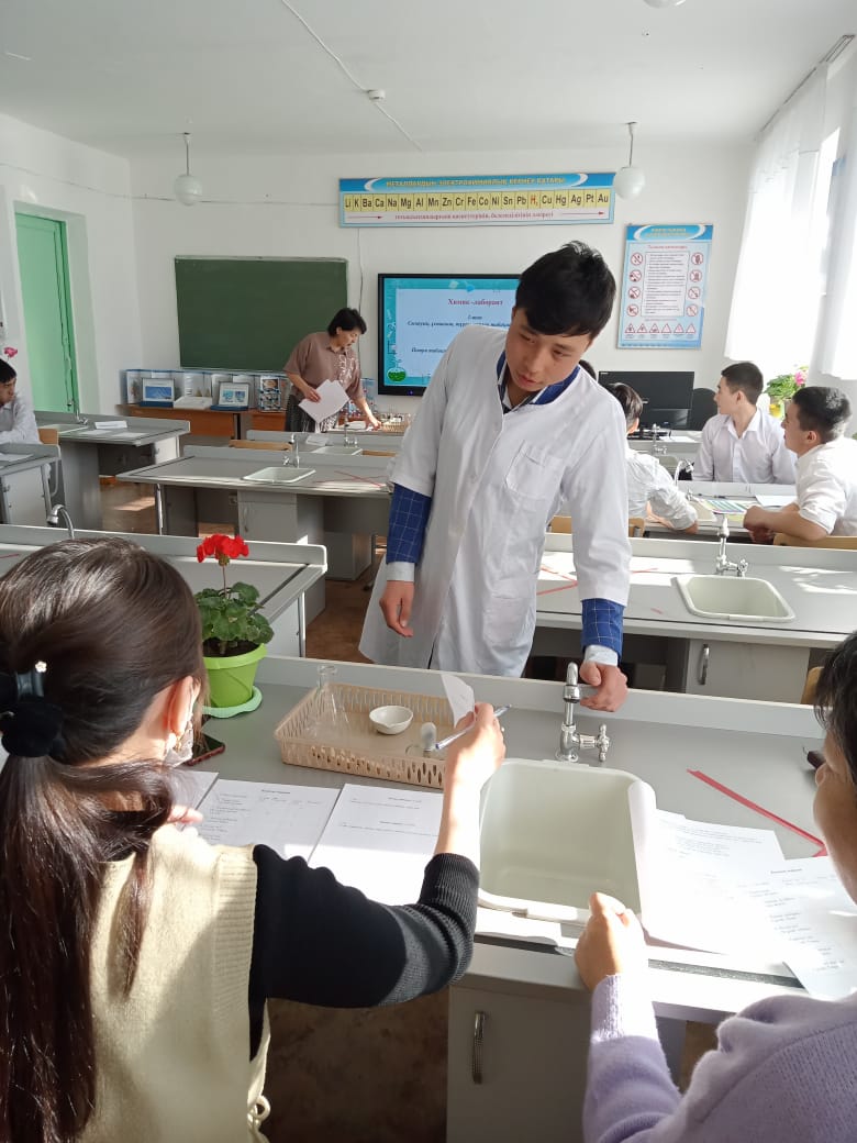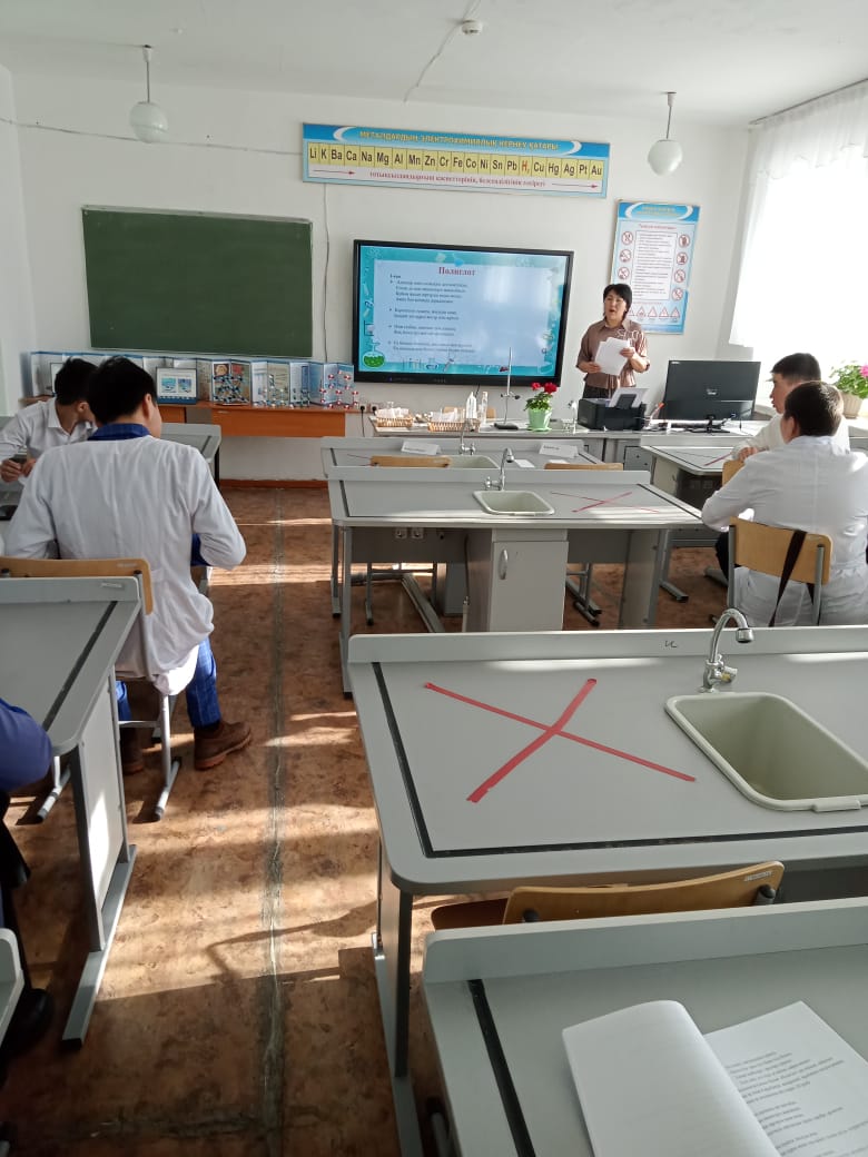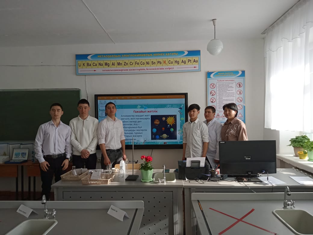Химия пәнінен Ибраева Жазира 2 курс студенттері арасында «Ойна, ойла, тап» сайысын өткізді. Сайыс таныстыру, химиялық эстафета, химик лаборант, полиглот, көршіні тап, үй тапсырмасы, ғажайып жетілік кезеңдері арқылы ұйымдастырылды. Студенттер химиялық эстафета кезеңінде сұрақтарға тез, дұрыс жауап беріп, келесі кезеңдерге зтіп отырды. Топтың бір мүшесі химиялық құрал-жабдықтардан берілген тапсырма бойынша қажеттісін лотокқа салып дайындап, қалған топ мүшелері жасырылған жұмбақтан жұмбақтың шешуін тауып қазақша, орысша, латынша не ағылшынша айтып, химиялық реакция теңдеулерін сәйкестендірді.Үйден химия әлемі туралы ертегі дайындап әкеліп қызығушылықтарын білдірді.