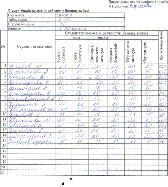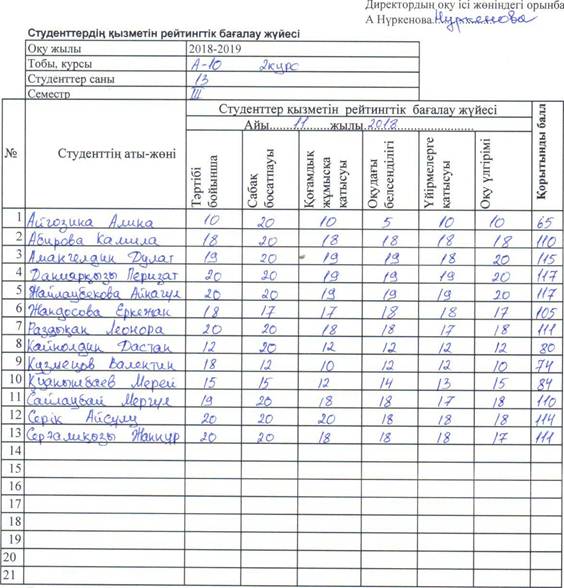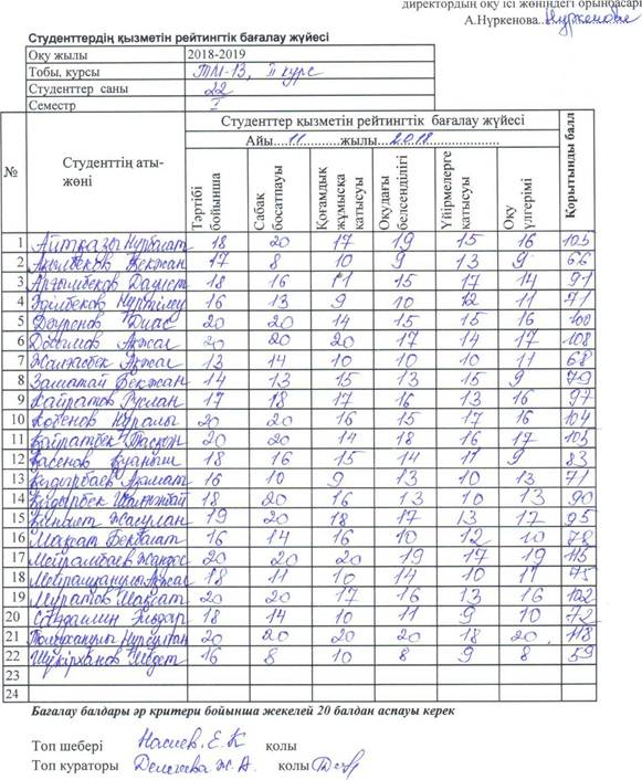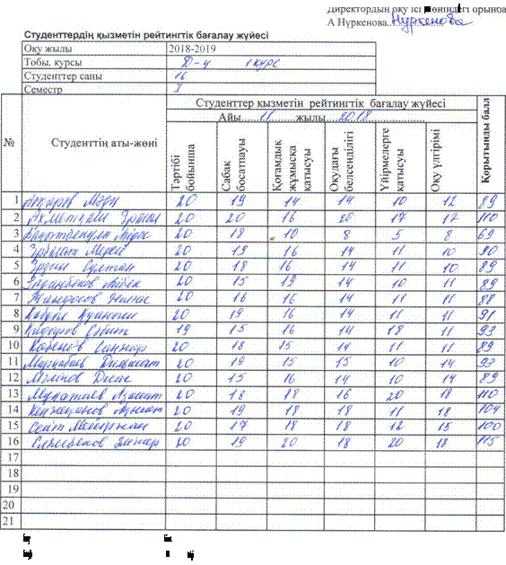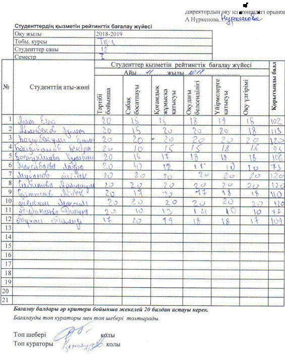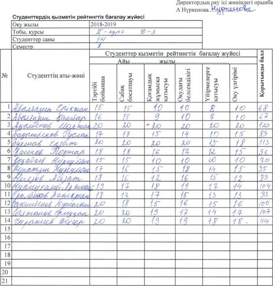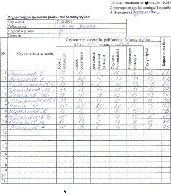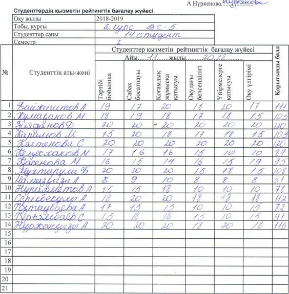 Студенттердің қызметін рейтингтік бағалау жүйесі