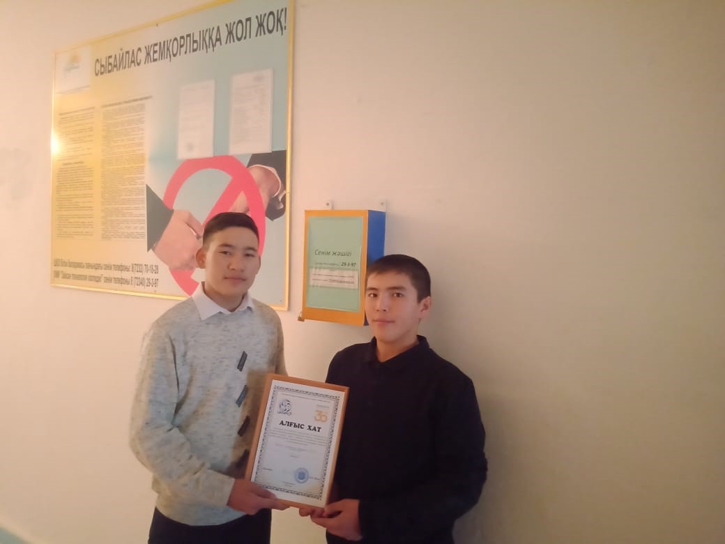 Слет барысында «Саналы ұрпақ» жобасы аясындағы шараларға белсене қатысып, берік азаматтық ұстаным танытқан және студенттер арасында сыбайлас жемқорлыққа қарсы мәдениетті қалыптастыруға елеулі үлес қосқан көптеген студенттер, ҚР Сыбайлас жемқорлыққа қарсы іс-қимыл Агенттігінің ШҚО бойынша Департаментінің Алғыс хаттарымен марапатталды. Солардың бірі «Зайсан технология колледжі» КММ «Ферма шаруашылығы» мамандығының ІІ курс студенті Ерболатұлы Ерасыл марапаттауға ұсынылды. Ерасыл колледждің қоғамдық жұмыстарына белсене қатысады. «Сайхан» спорт клубында волейбол секциясына, аудандық поэзия үйірмесіне қатысады. Еріктілер тобының да белсенді мүшесі. Сыбайлас жемқорлыққа қарсы бағыттағы колледжішілік іс-шаралардың, «Елін сүйген, елі сүйген Елбасы» атты дөңгелек үстелдің белсенді қатысушысы. «Асқақтай бер, астанам» атты топ жетекшісінің бастауымен түсірілген бейнероликте, Айбек Нұғымаровпен «Адалдық сағатында» белсенділік көрсетті.