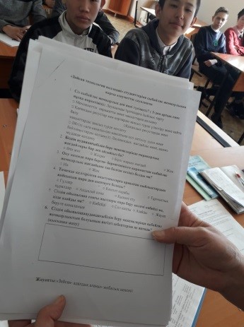 Сауалнаманы топ кураторлары өздері жүргізді. Сұрақтардың қорытынды жауаптары неше адам қай нұсқаны белгілегендігі санмен көрсетілген. Студенттер сауалнамаға шынайы жауап берді деп ойлаймыз, Көпшілігінің парақорлыққа қарсы екендіктері байқалады.