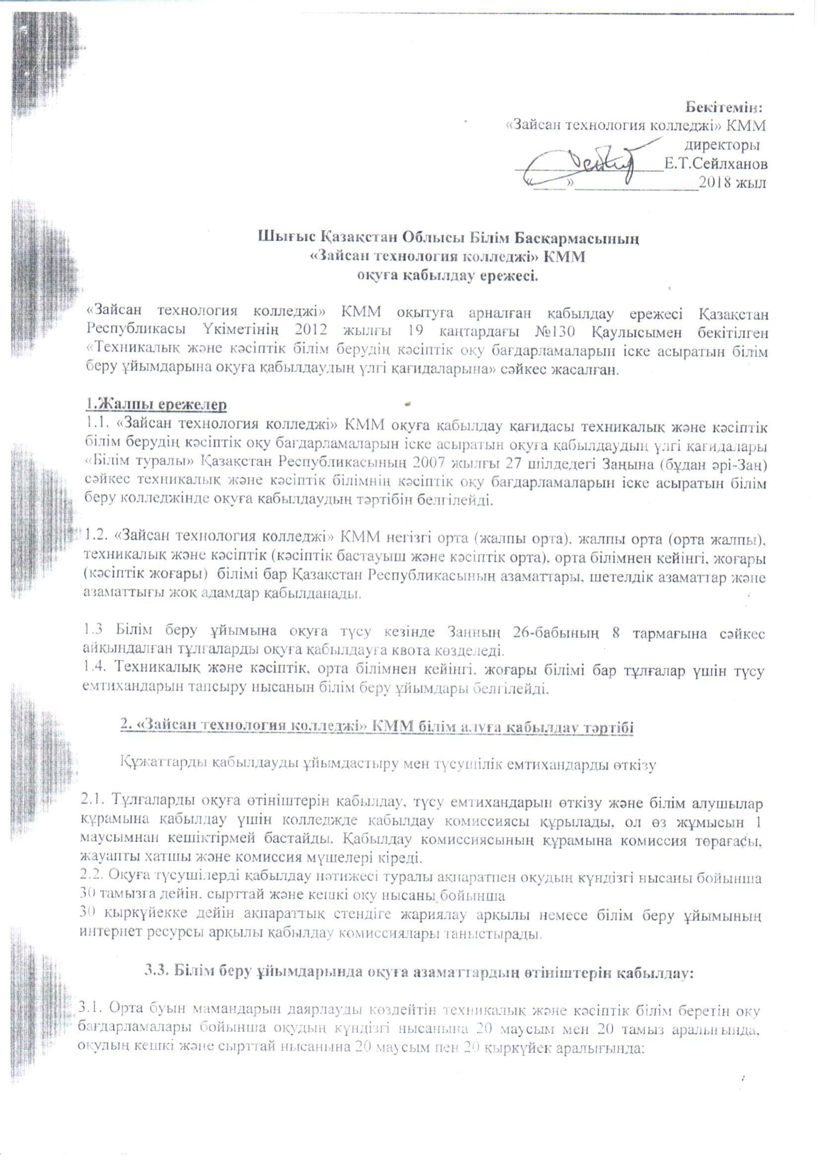 Оқуға қабылдау ережесі