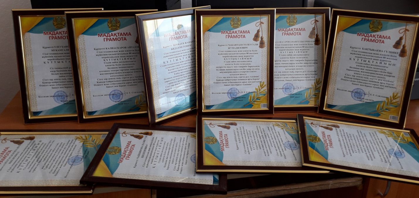 Колледж директоры Е.Т.Сейлханов техникалық және кәсіптік білім беру жүйесінің ардагерлерін, ұстаздарын мерекелерімен шын жүректен құттықтап, еңбек ардагерлері мен қазіргі таңдағы колледж ұжымындағы мерейлі жас иелерін марапаттап, алғыс айтып ризашылығын білдірді.